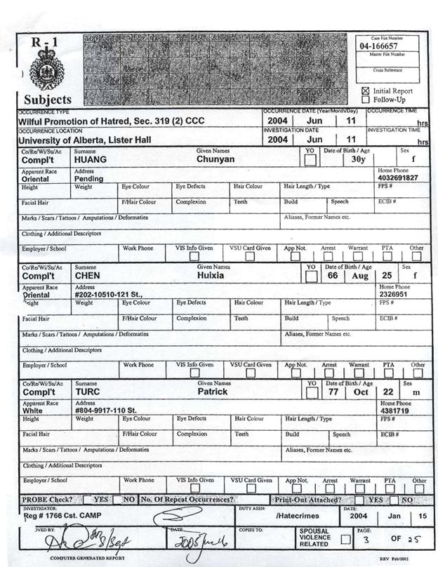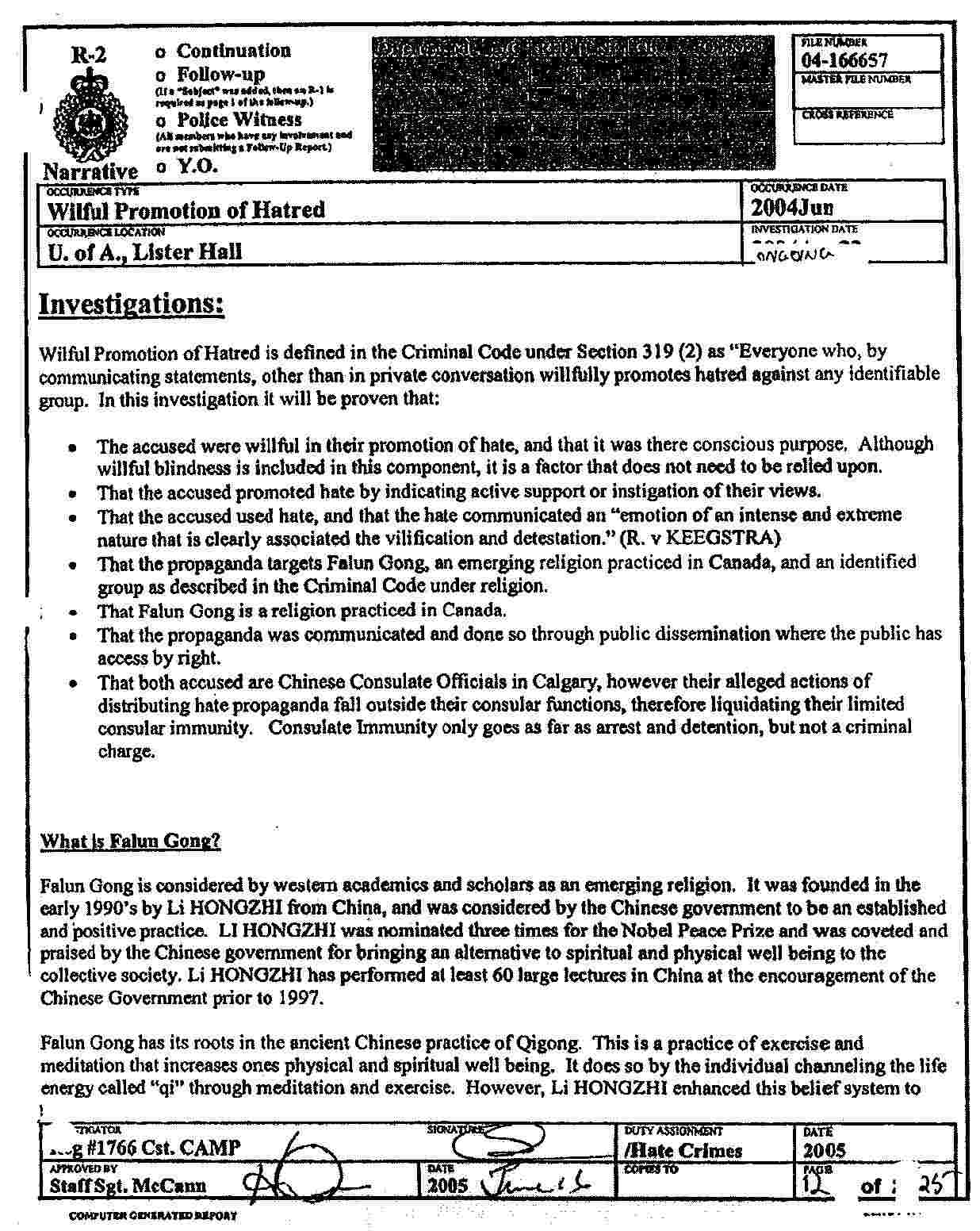 of Wilful Promotion of Hatred by Chinese Consular Officials against Falun Gong